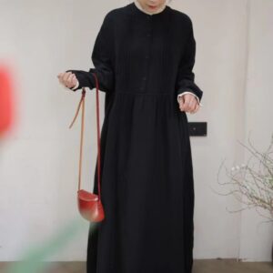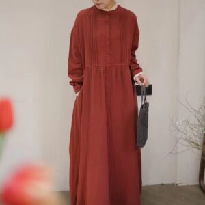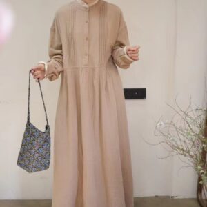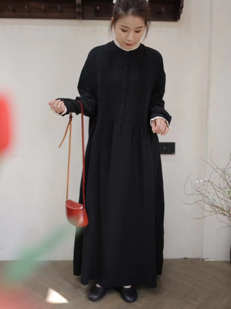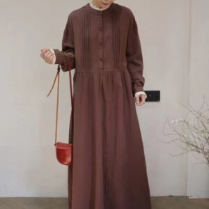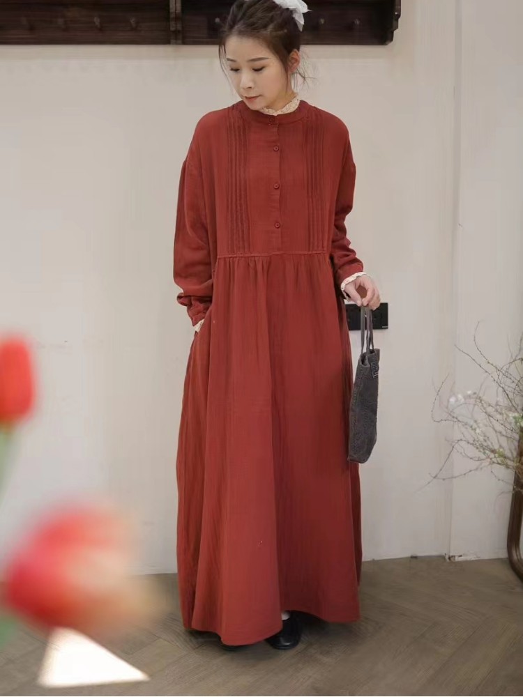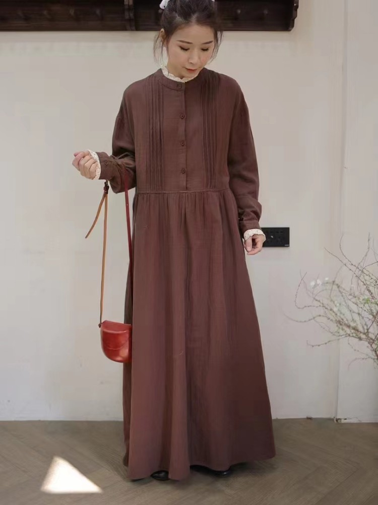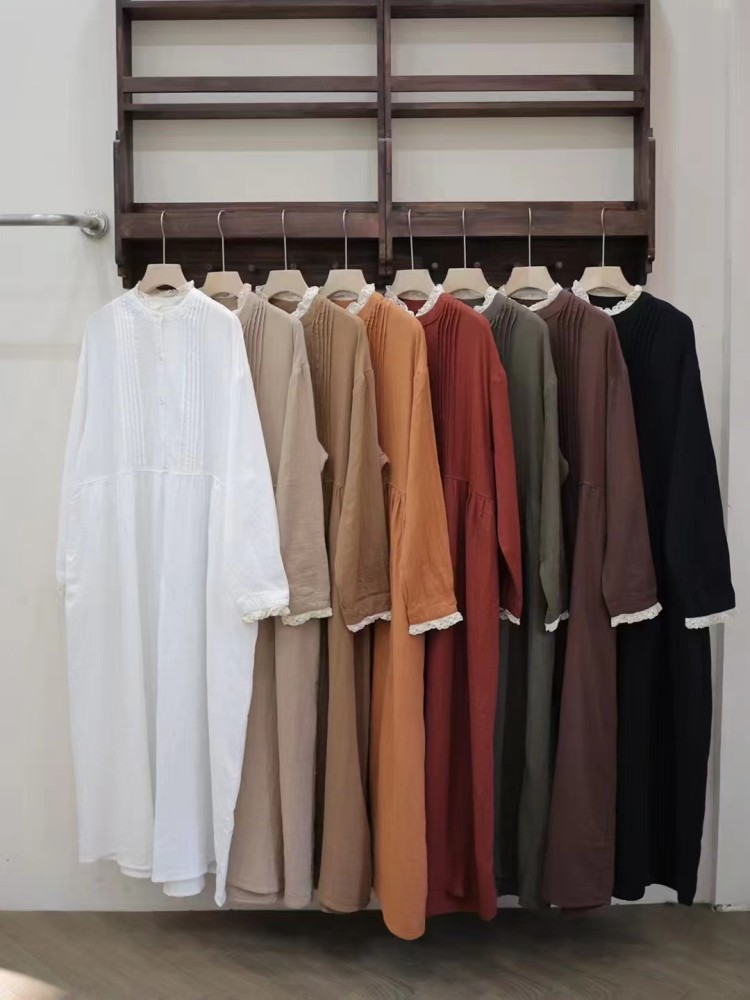 Be the first to review “Japanese forest double-layer cotton yarn dress, spring new loose and versatile age-reducing parquet lace collar semi-open buckle long skirt”