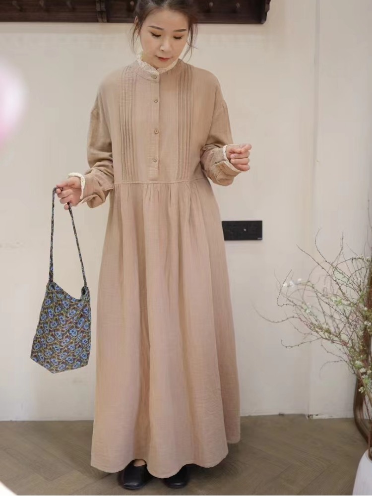 This is a classic literary retro long dress designed for casual daily wear. Adopting premium cotton fabric with skin-friendly and breathable features, the dress brings you all-day comfort. The simple solid color design matches splicing craftsmanship and delicate lace elements, creating an elegant and artistic temperament.