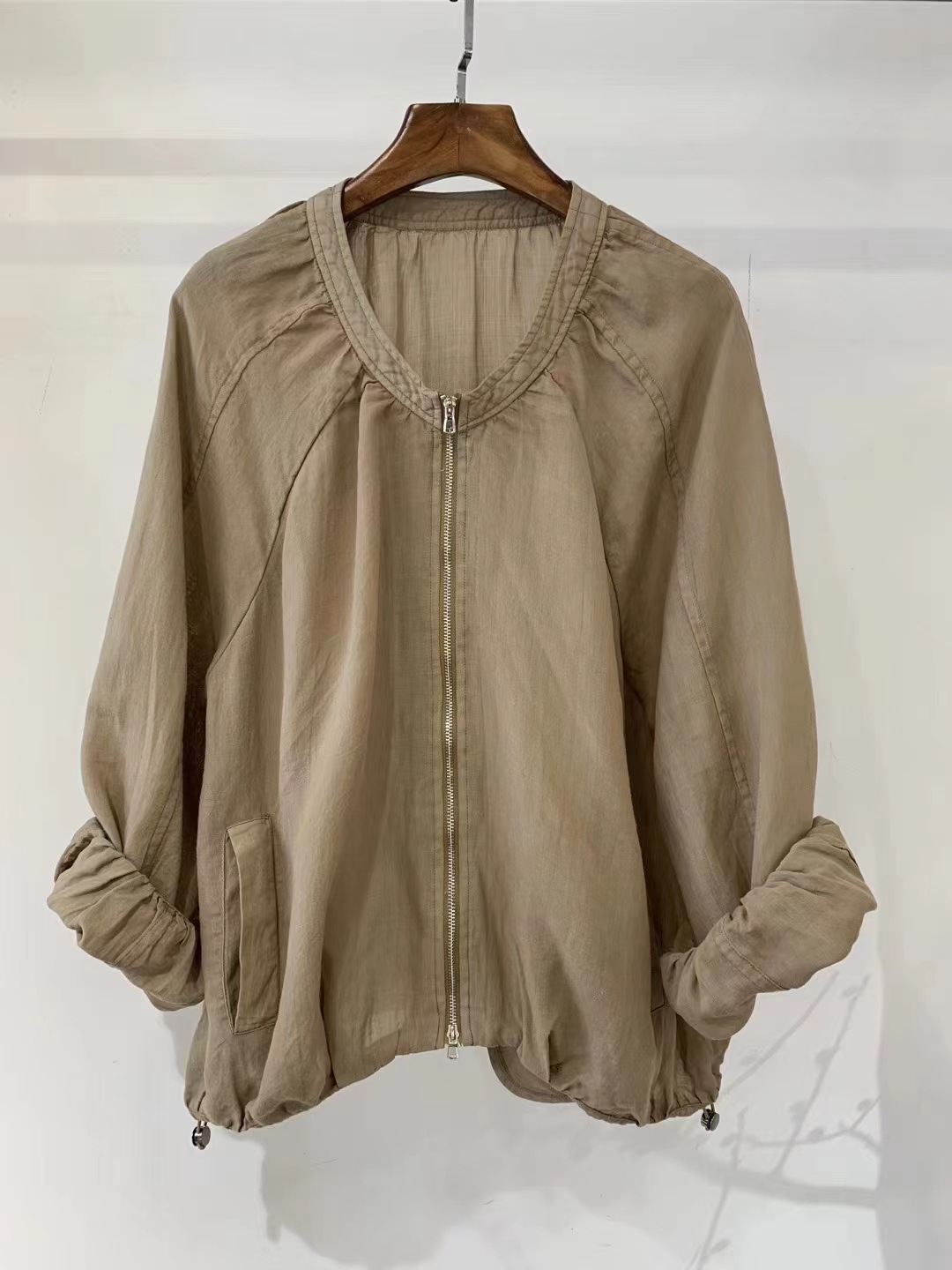 Be the first to review “Japanese Tencel ramie zipper jacket women’s spring new loose casual versatile drawstring hem sunscreen top for women”
