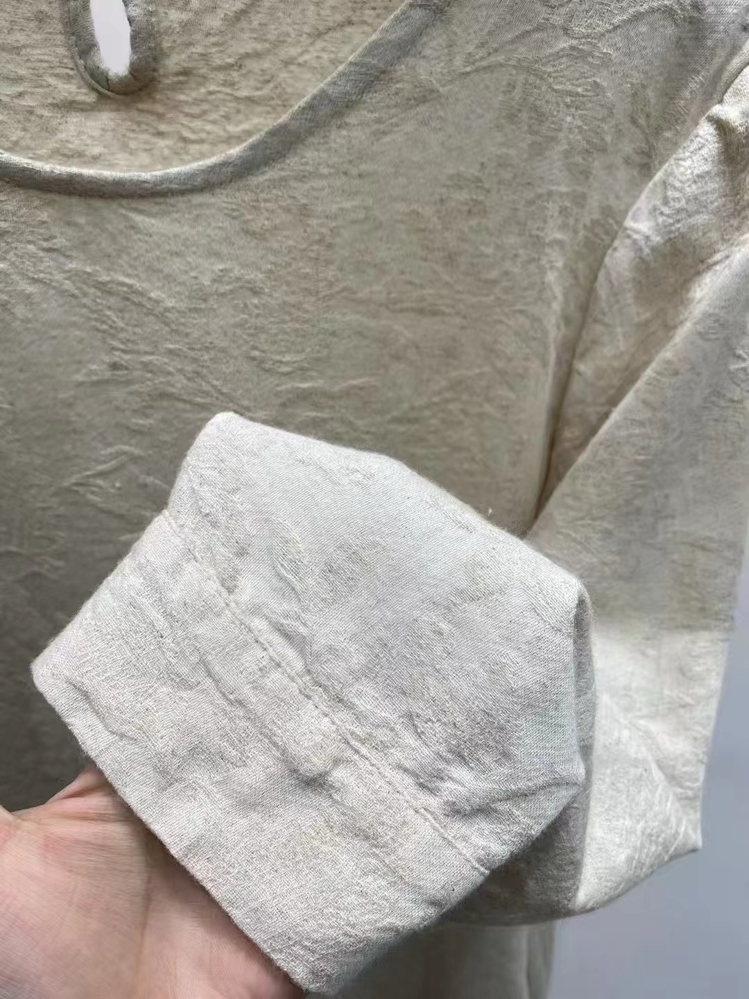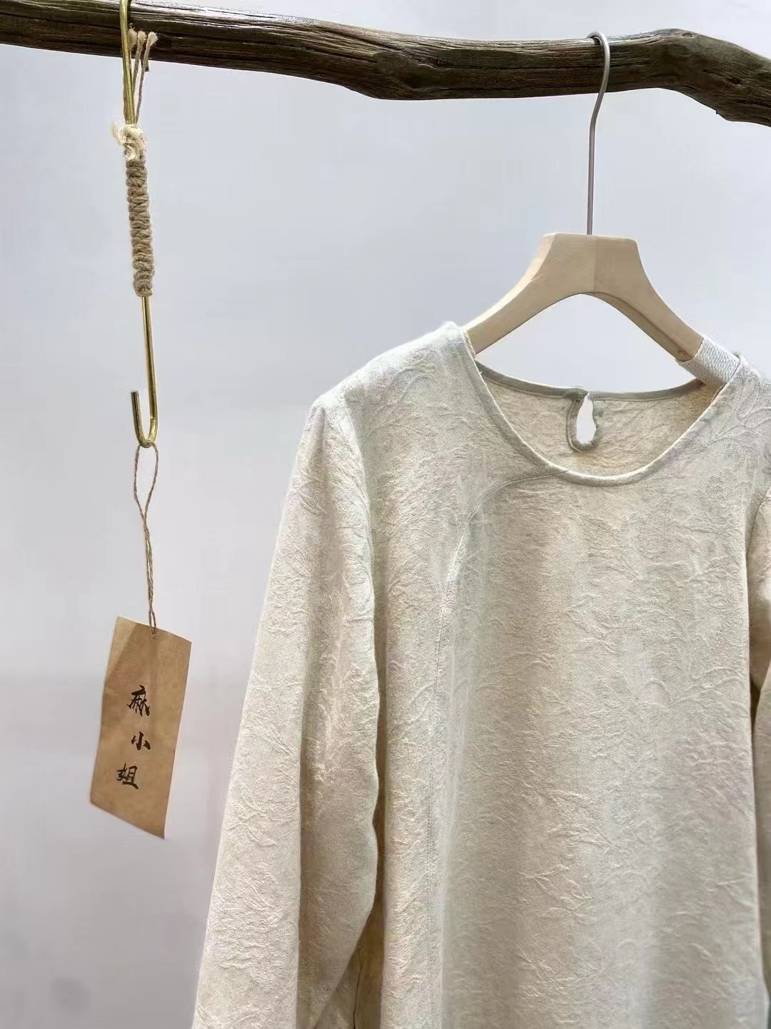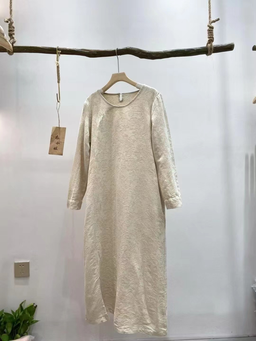 This elegant literary retro dress is the new style for autumn 2025, originally produced in Changshu.Made of soft and breathable hemp cotton fabric, it brings skin-friendly comfort all day long.Classic crew neck and pullover design with long regular sleeves, loose waist matched with A-line long skirt, perfectly modifying body curves and easy to fit most figures.